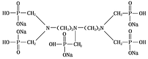 分子式:C9H23O15N3P5Na5 相對分子質量:683.2 結構式: 一、性能與用途 DTPMP·Na5是一種中性產品,DTPMP·Na5無毒,在水處理中用作循環冷卻水和鍋爐水的阻垢緩蝕劑。 DTPMP·Na5可用做過氧化物穩定劑、紡織印染用螯合劑、顏料的分散劑、化肥中微量元素攜帶劑、混凝土添加劑。此外,在造紙、電鍍和化妝品等方面也得到了廣泛應用。 二、技術指標